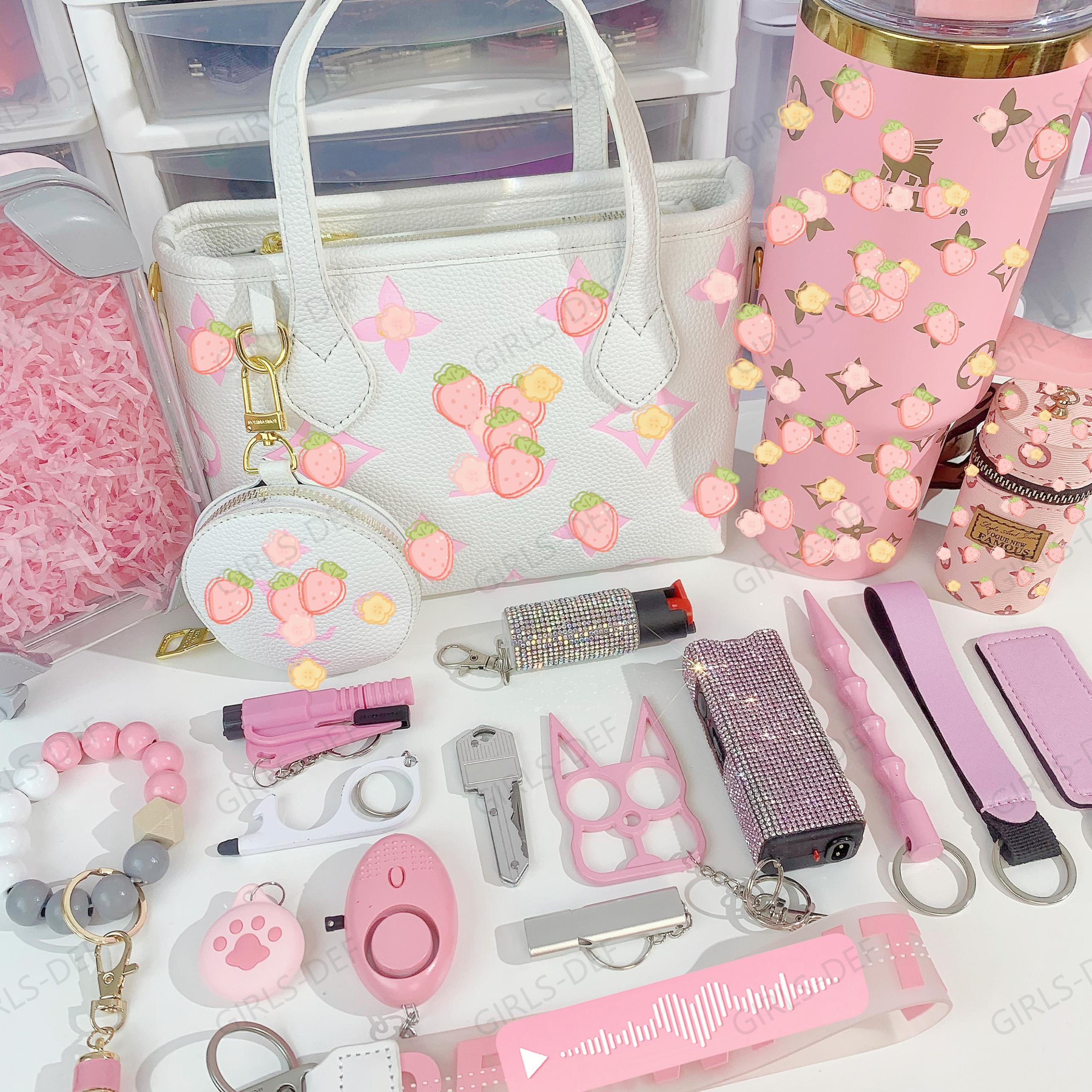 Brand new Pink & White French Designer Tote Bag self defense keychain set in 3.0 Gen design. For tumbler, discreet pen and comb please select add-on options