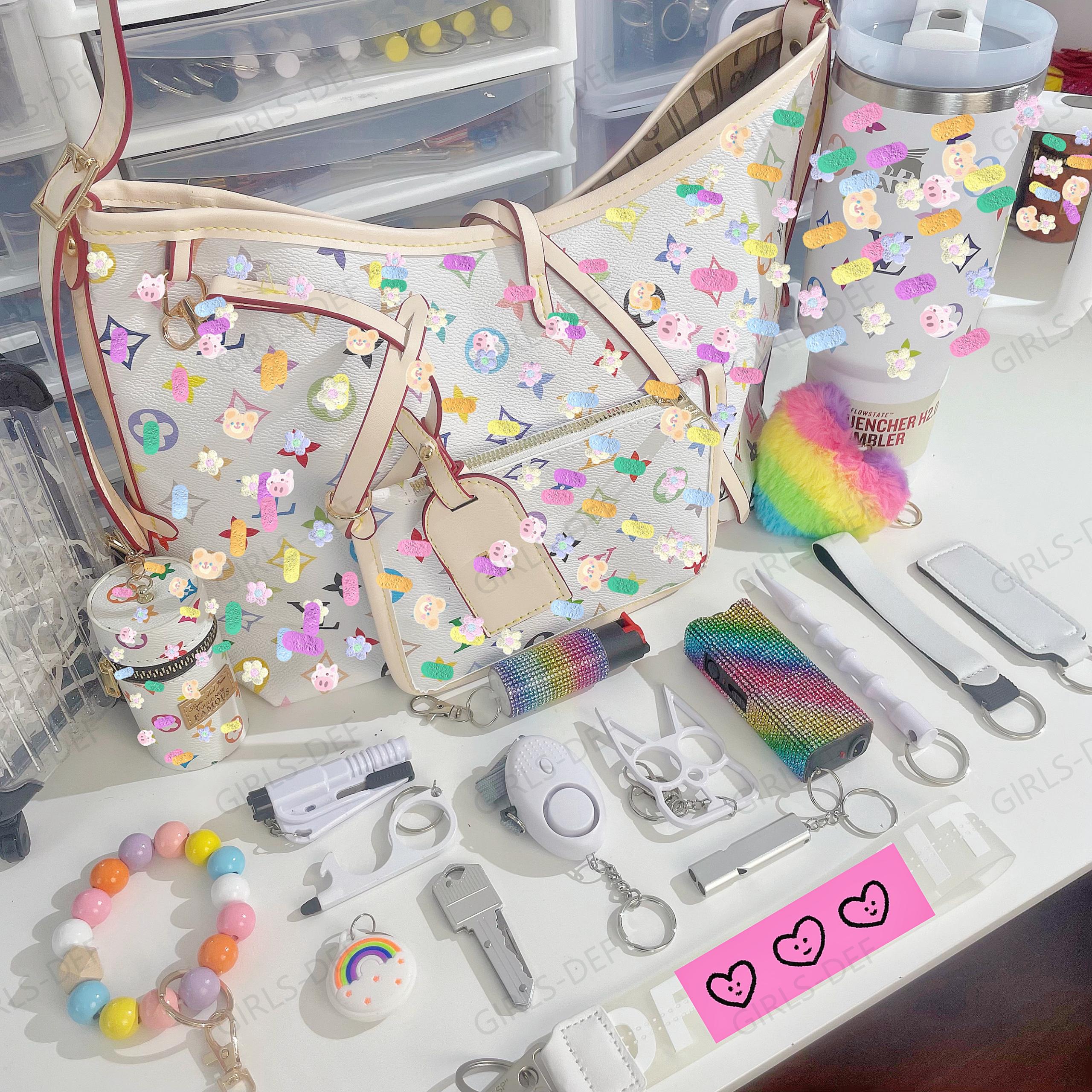 Brand new jumbo French Designer Rainbow Tote Bag self defense keychain set with mini rainbow bag. For rainbow tumbler, discreet pen and comb please select add-on options